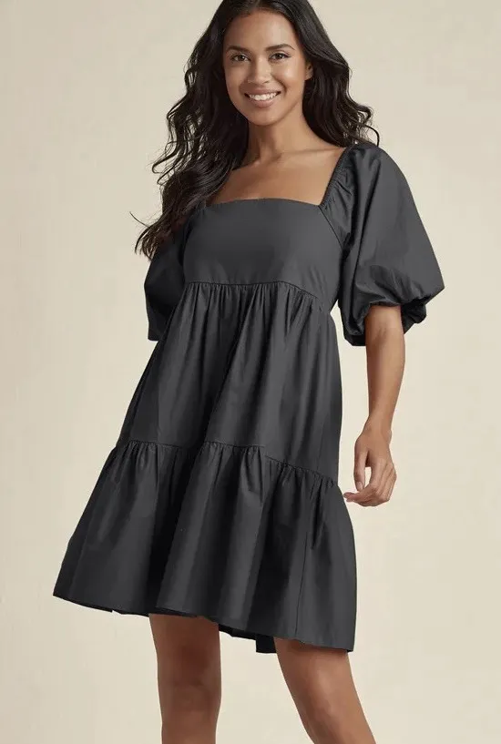 Details: • Brand: Gianni Bini • Style: puff sleeve, lined • Color: Black • Size: Large • Fabric: 70%... Show more