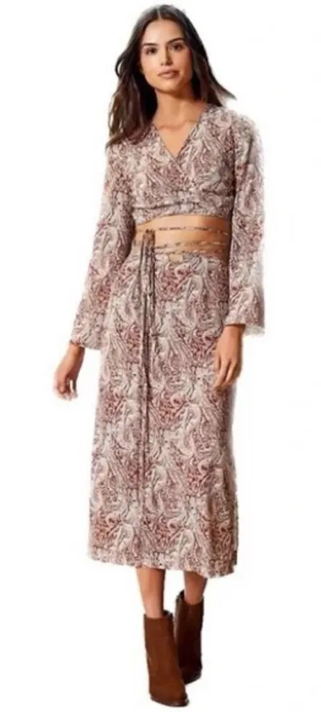 Gianni Bini Brown Orange Paisley 2 Piece Midi Dress Condition: top is new with tags; skirt is new w... Show more