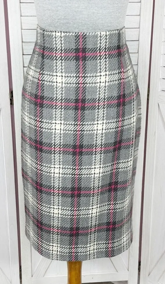 Gianni Sport Vintage Tartan Plaid Wool Pencil Skirt Grey Pink Size 12 Grey pink & cream tartan pl... Show more