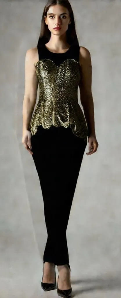 Elevate your wardrobe with the Gianni Bini Gold Sequin Peplum Top, a dazzling addition perfect for a... Show more