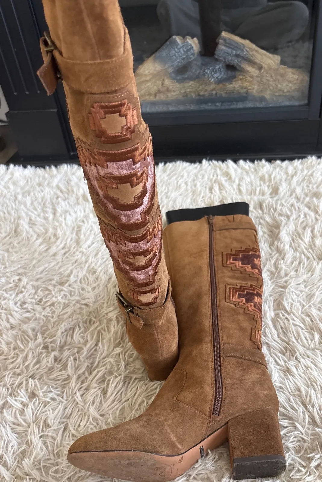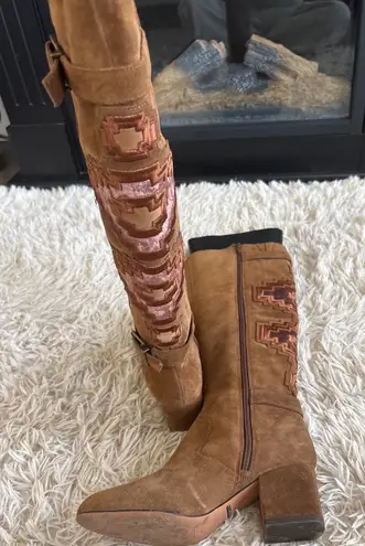 Step into stylish western-inspired flair with these Gianni Bini suede boots. Intricate geometric em... Show more