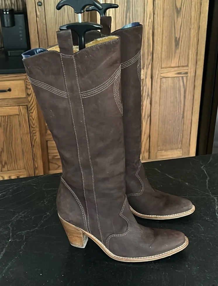 Gianni Bini tall knee high heel western suede chocolate brown boots women’s 8.5 Nice used conditi... Show more