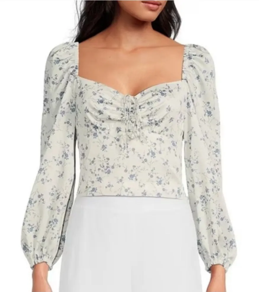 Gianni Bini 'Teagon' White Blue Floral Crop Milkmaid Top Condition: New With Tags - price tag may h... Show more