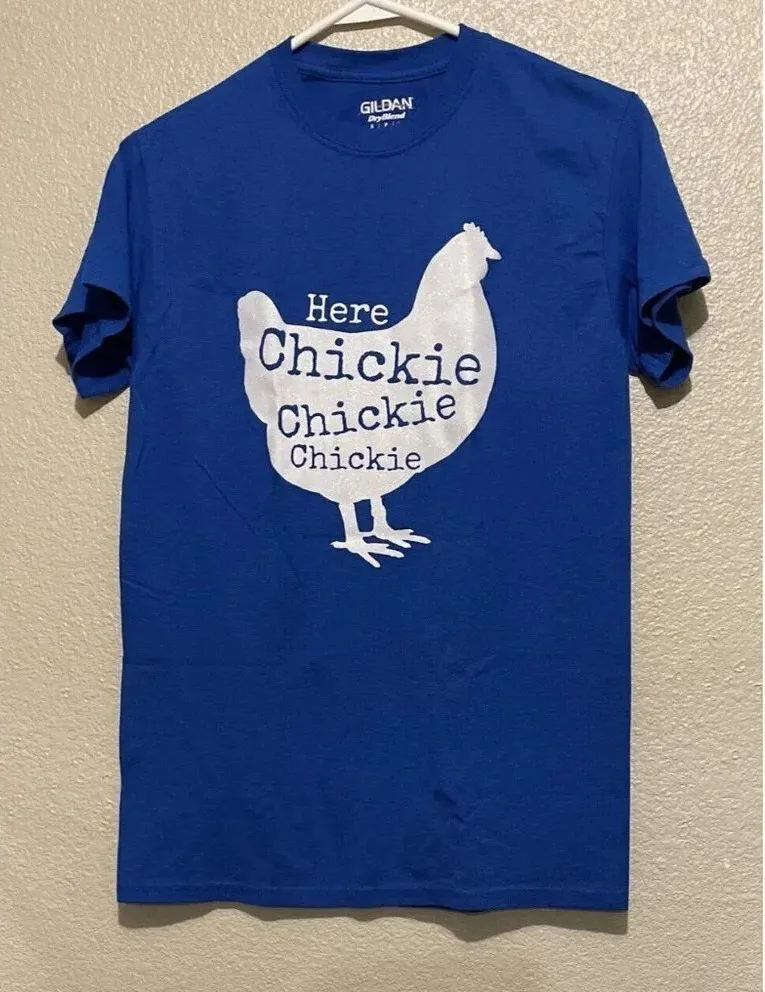 Chicken Here Chickie Chickie Blue Funny Novelty T Shirt Tee Unisex Size Small. In like new conditio... Show more