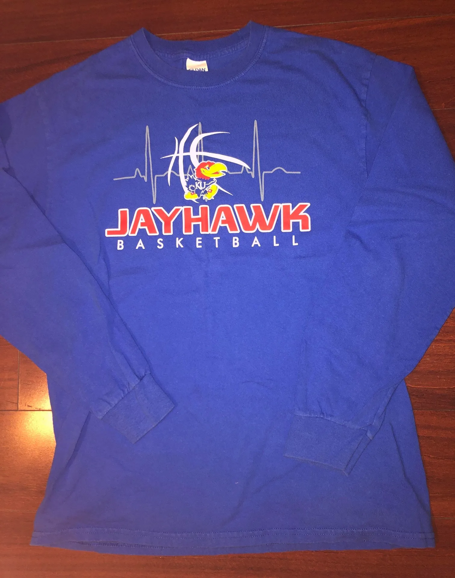 Kansas Basketball long sleeve T-shirt Gilden Size Medium Slightly used condition