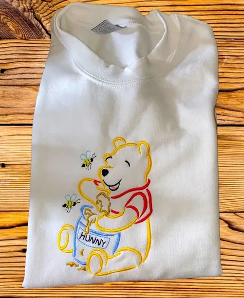 • Embroidered Pooh sweatshirt • size small • white • Gildan brand • Heavy blend 50% cotton 50% •... Show more