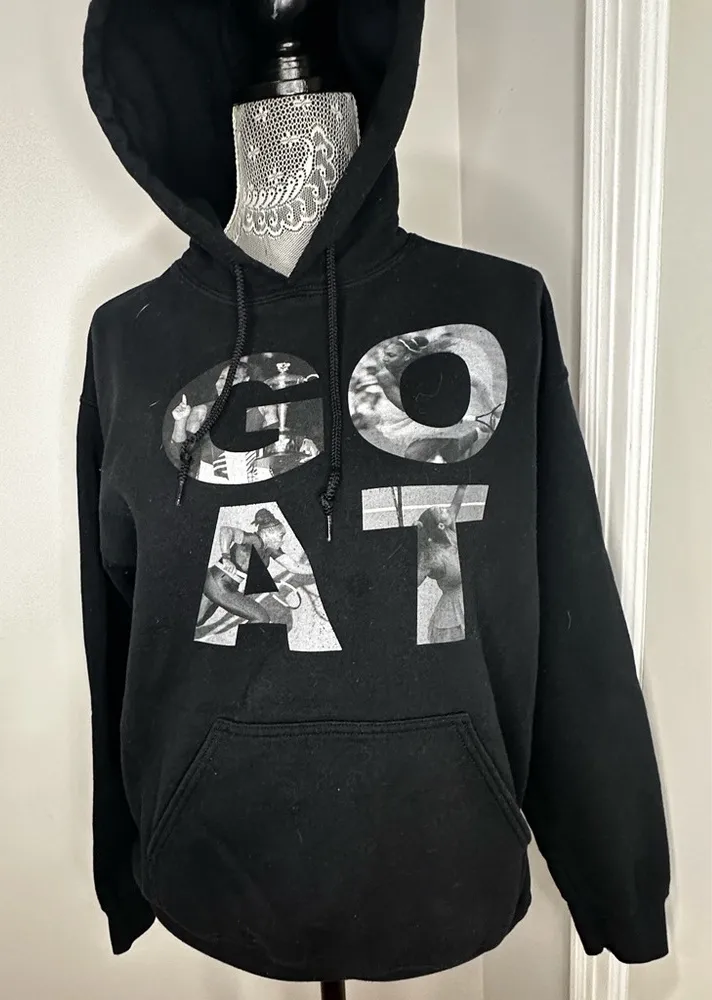 Serena Williams Black GOAT hoodie. Medium. Grand Slam Titles. Drawstring. Kangaroo pocket. Good use... Show more