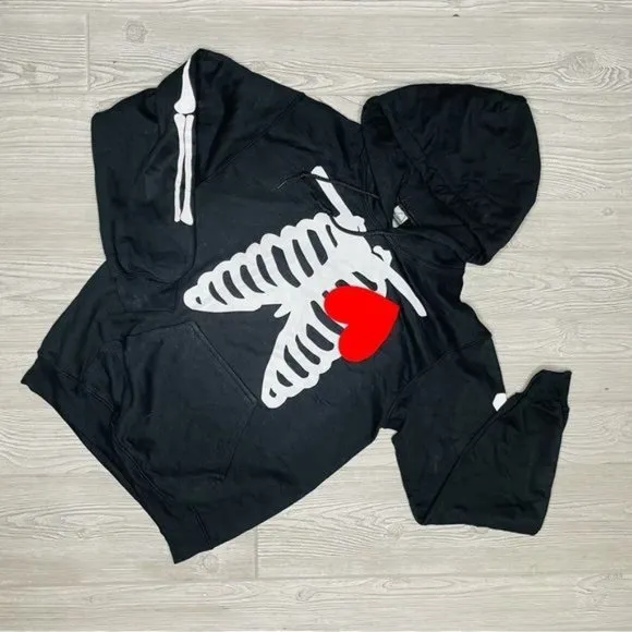 Gildan skeleton with upside down heart hooded sweatshirt / hoodie Halloween sm