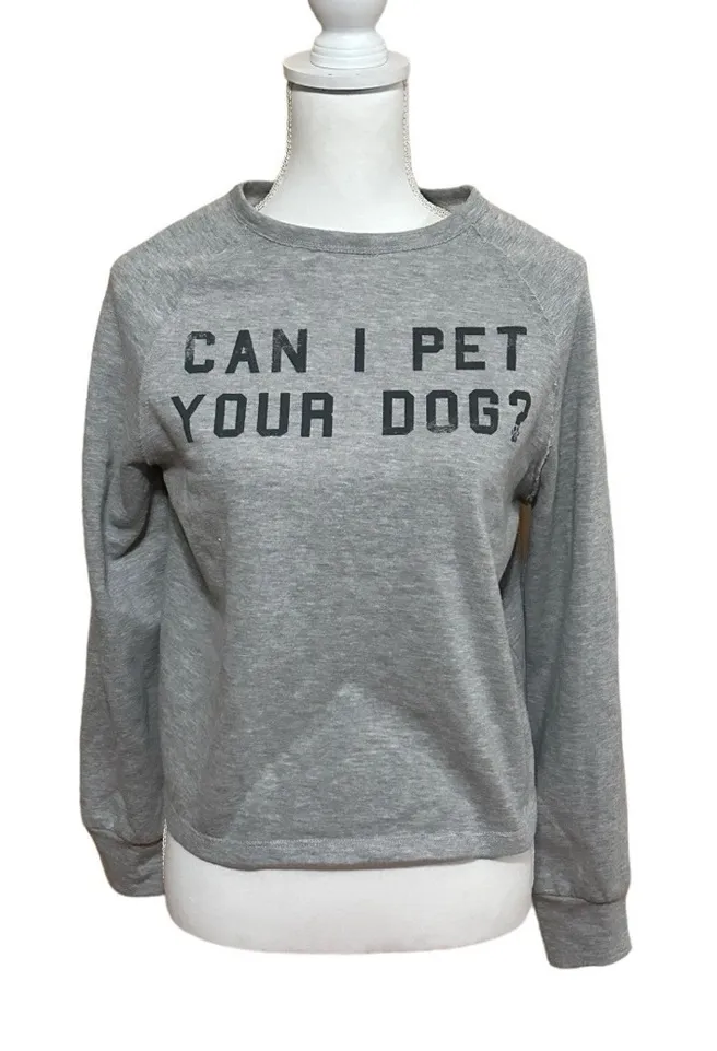In excellent pre-owned condition No holes/No stains/No pilling/No fade Cozy and playful, this Gilli sweatshirt comes in a soft gray knit with a fun front graphic that reads “Can I Pet Your Dog?”. Designed with a crew neckline, long sleeves, and ribbed trim, it’s a casual staple that adds personality to your everyday wardrobe. Perfect for dog lovers and laid-back weekend style. Brand: Gilli Heather gray with black text graphic Crew neckline Long sleeves Ribbed cuffs and hem Pullover style Size: No SIze Tag Available See Measurements Thanks for shopping; I'm open to offers and bundles! All orders ship within two business days. The majority ship by the next business day! Smoke-Free and Pet Hair-Free House (My cats are naked) #Gilli #GraphicSweatshirt #DogLovers #CasualStyle #ComfyClothes