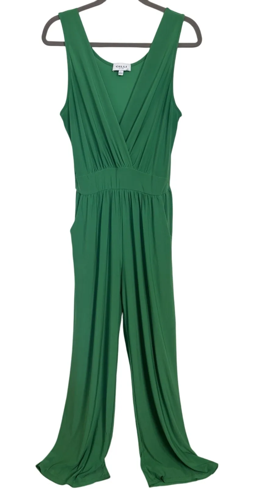 Pockets Gilli Women’s Size Large Kelly Green Jumpsuit Sleeveless V Neck Wide Leg Pockets Pol... Show more