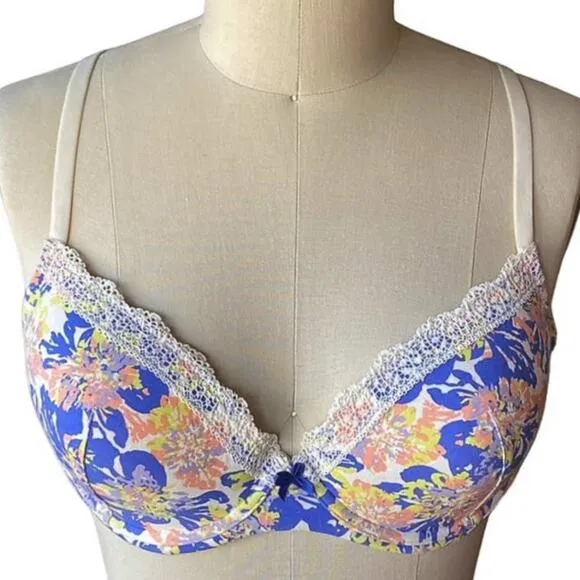 This GILLIGAN & O'MALLEY Blue & Pink Floral Underwire Lace Cotton Bra is in excellent preowned condi... Show more