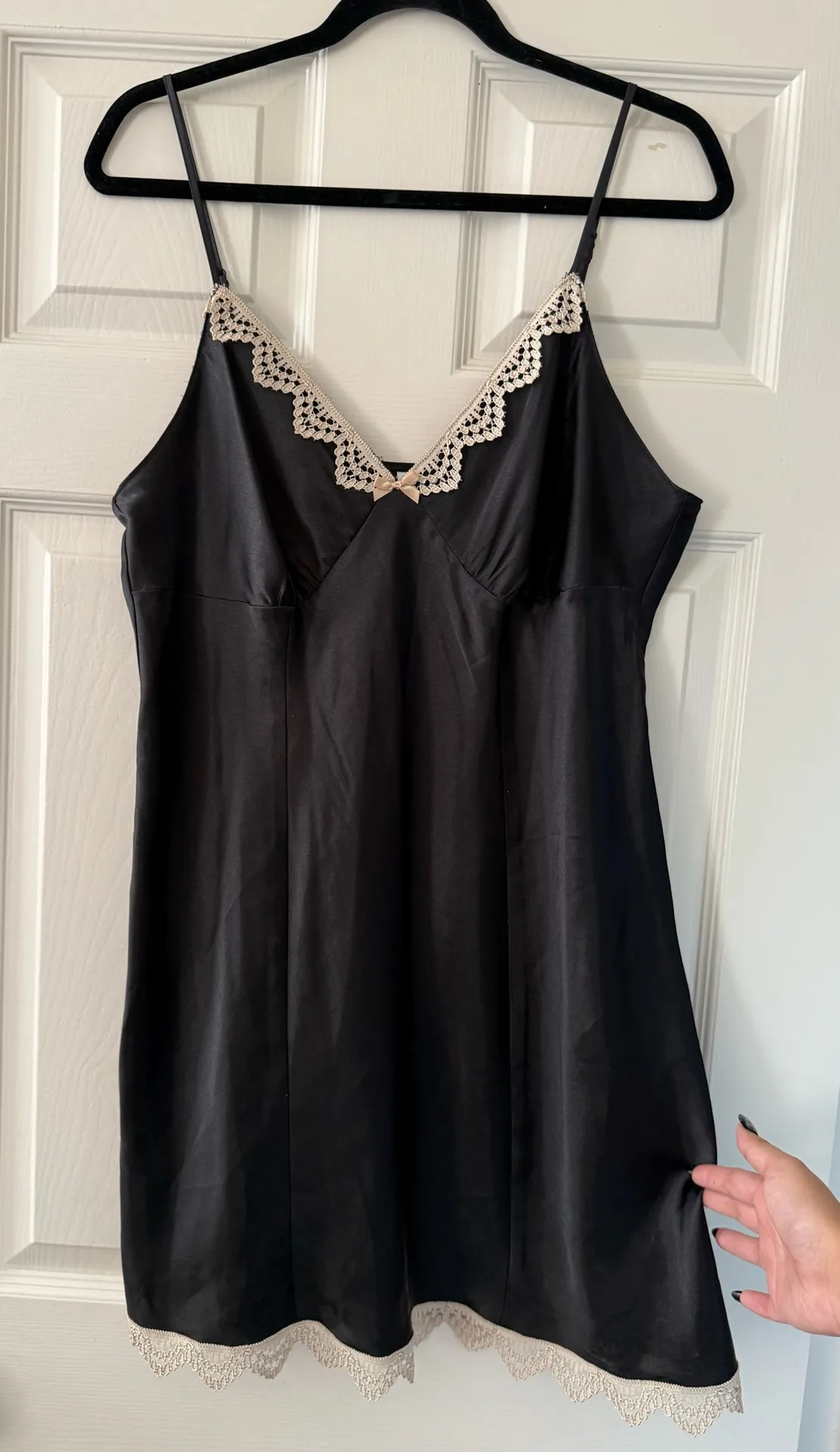 Gilligan & O'Malley Black Satin Cream Lace Trim Slip Dress Size XL - $29 - From Jams