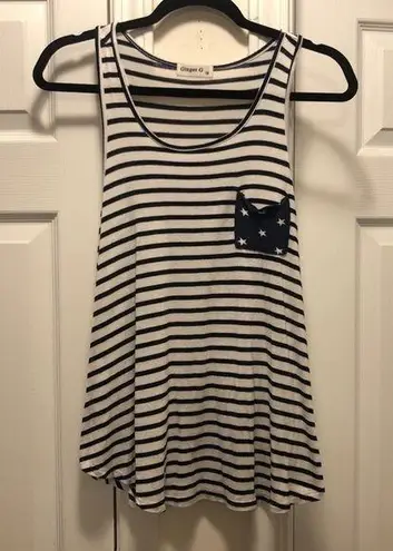 Striped Racerback Tank Top by Ginger G. Blue and white color. Star print pocket on front. Size M. Ap... Show more