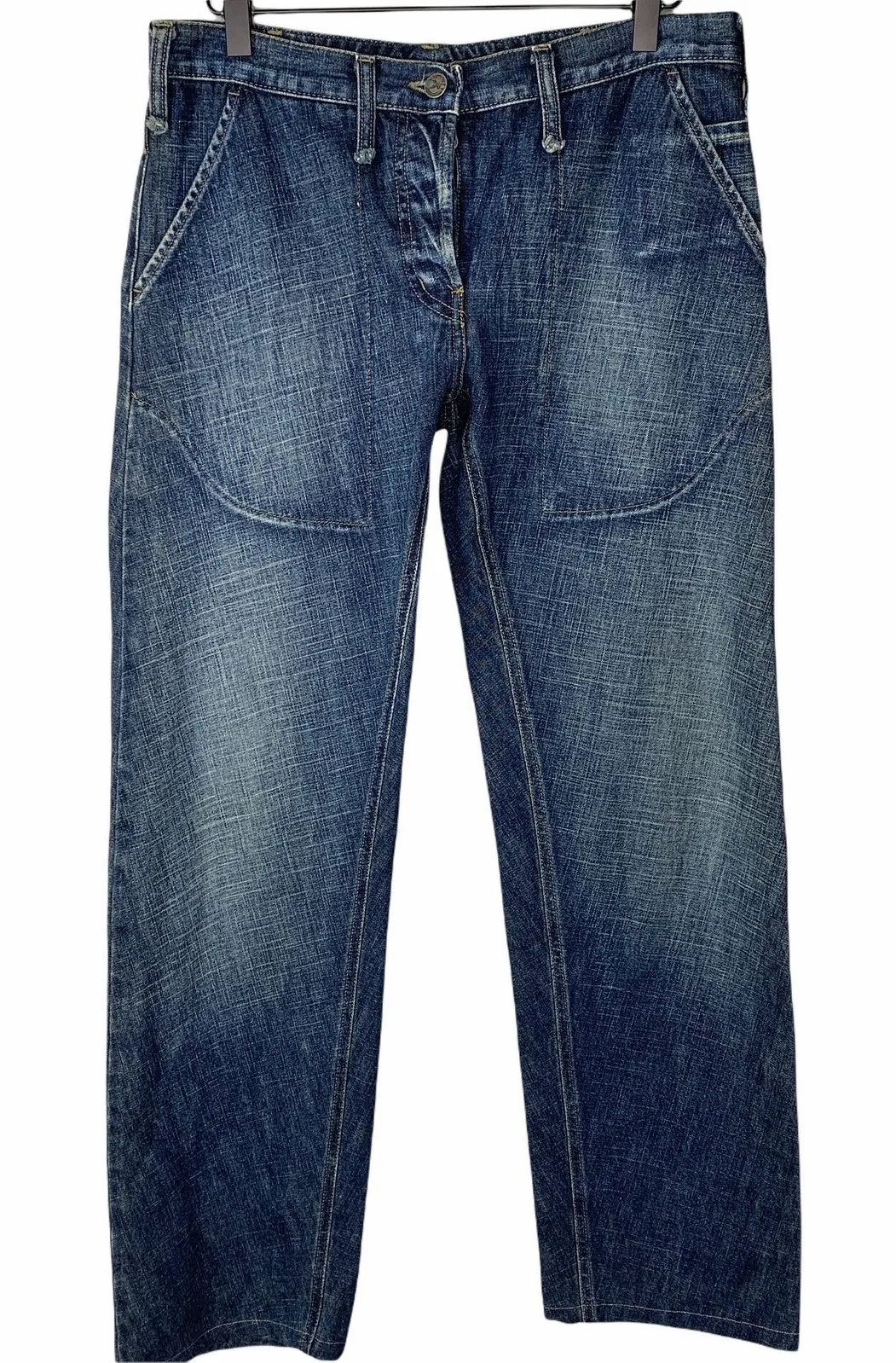 Armani Jeans - designer brand Vintage 90s designer jeans Relaxed, loose Women's Mid High-Waist 8 Italy Great condition! Button fly Indigo Series 002 15.5 in flat across waist 9 in rise 29 in inseam