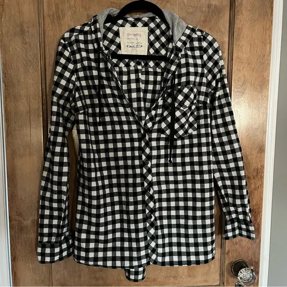 Girl Krazy White and Black plaid hooded button up top. Warm & cozy Size XS - $10 - From Brittany