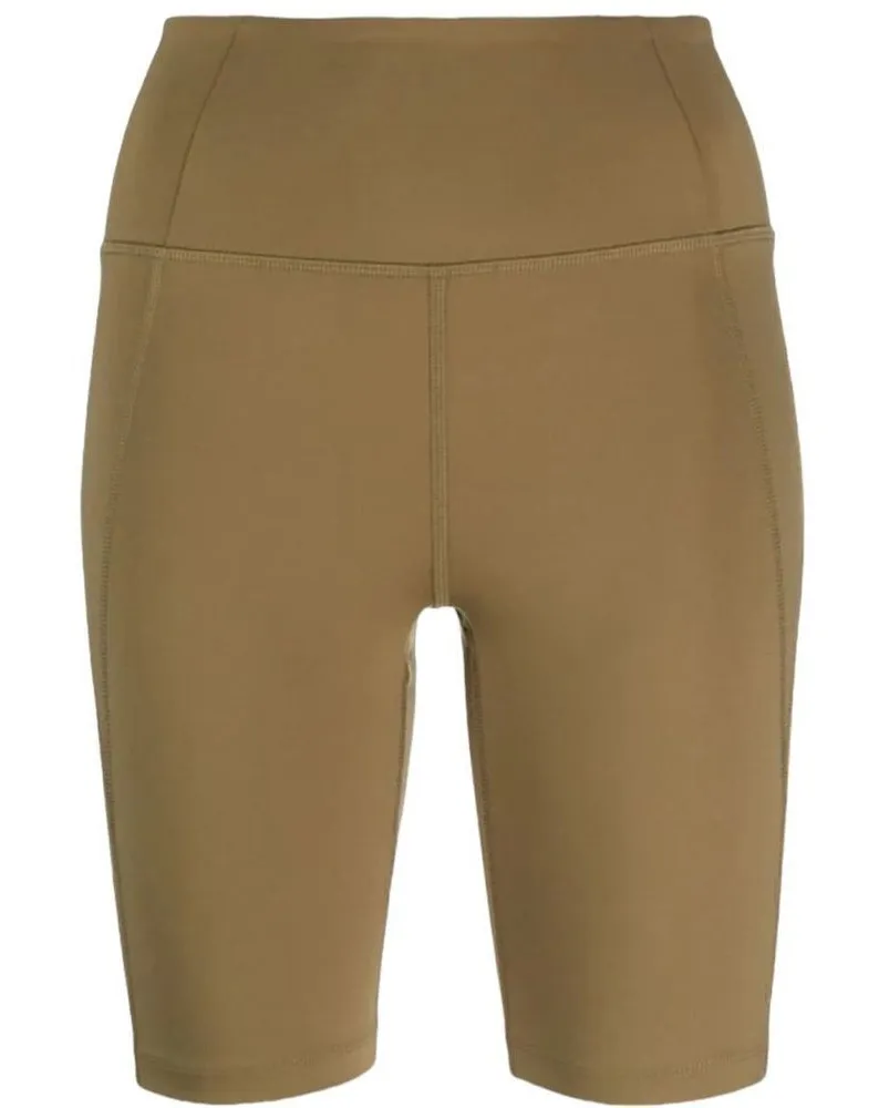 khaki recycled polyester blend stretch-design exposed-seam detailing tonal stitching high-waisted elasticated waistband knee-length This item is made from at least 50% recycled or upcycled materials. For recycled synthetic clothing products, we highly recommend using a microfibre-catching washing bag to ensure that no microplastics that can pollute water are released in the process. Size XS Excellent condition! Ships fast from a smoke free home. 8” inseam 0885-39