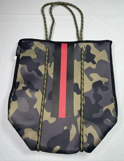 GIRLIE GIRL ORIGINALS Tote Purse Green Camo Red Stripe Bag Neoprene 14x16x8" NWT - $35 New With Tags - From Yannie