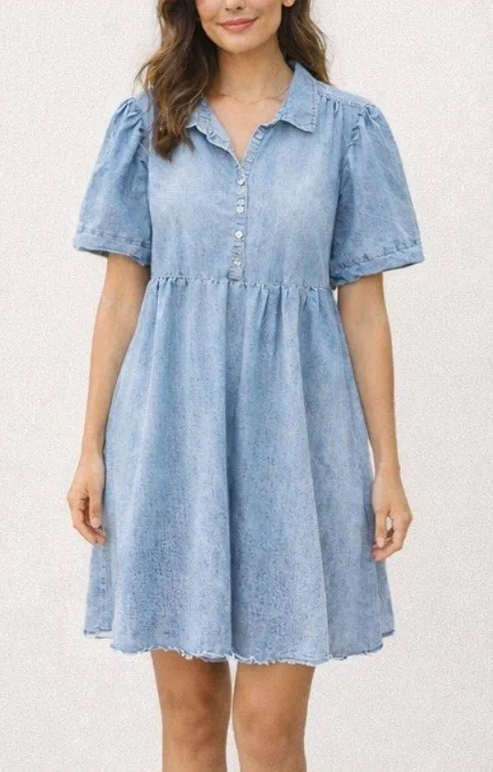 Given Kale Style: Denim Babydoll Mini Dress Condition: New Without Tags (NWOT) Size: XL / X-Large Ap... Show more