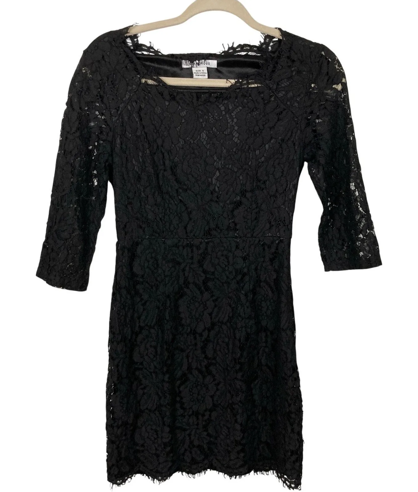 Excellent gently used condition, with no visible flaws (see pics for additional details). NOTE: runs small, please see measurements. Style tags: gothic, dark romantic, dark feminine, wedding, cocktail, little black dress, eyelash trim, lined, British, date, Valentine Please check measurements against an item you currently own! Flat measurements (approximate) Length: 31" Pit-to-pit: 15.5" (stretches to 17") Sleeve: 14" Waist: 13.5" Hip: 16" (stretches to 18") Smoke-free, pet-friendly home. Items are steamed before storage.