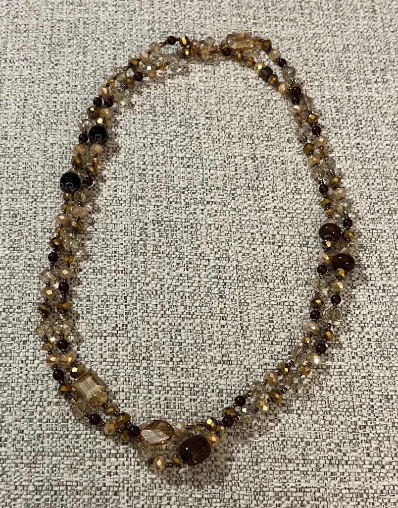 Glass Beaded Necklace in Amber and Brown Tones - $20 - From Rebecca
