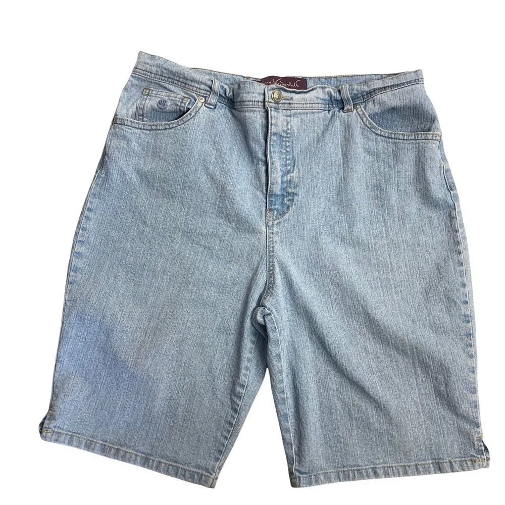77% cotton, 21% polyester, 2% spandex, machine wash. Belt Loops, zipper and button closure. GLORIA VANDERBILT, Women’s Bermuda Jean Shorts, Size 16, Blue. Please see approximate measurements in pictures before purchasing. Use your own judgment as to the fit. Send me an offer. I will either accept or counter! W1,35B, stretchy, comfy, stylish