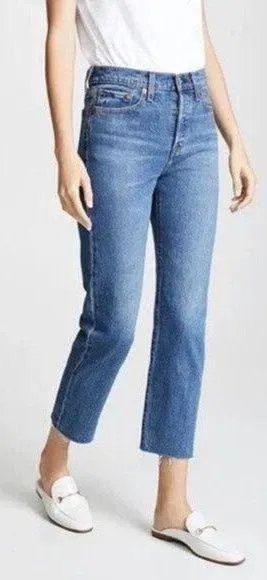 Levi's Wedgie Straight High Rise Raw Hem Jeans Size 28 High Rise Straight Cropped Leg Raw Hem Button... Show more