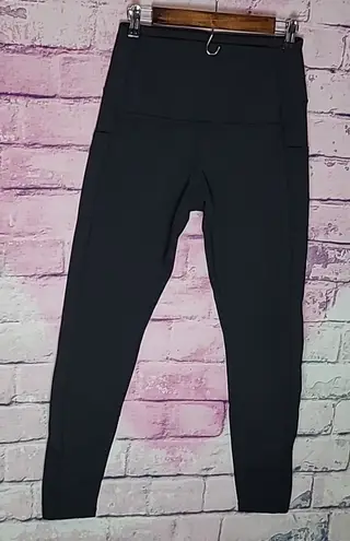 wider control top style waist sheer mesh small side pockets great condition no tears, stains thicker knit style measurements approximated waist across 13.5 inches rise 12.5 inches inseam 28 inches ankle 4.5 inches
