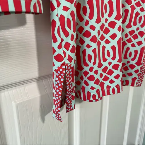 J. McLaughlin Catalina Cloth Tunic Top 3/4 Sleeves Size S Gold Buttons Pink Aqua - $34 (78% Off Retail) - From Allie