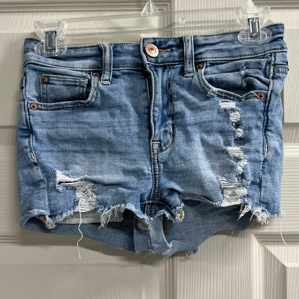 American Eagle Hi-Rise Shortie Jean Short Super Stretch Cutoff - Size 00 - VGUC Blue - $10 - From Renee