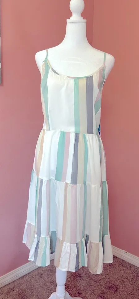 New with tags! Features: The dress features pastel-colored stripes and, includes a bow-tie back deta... Show more