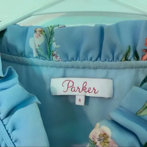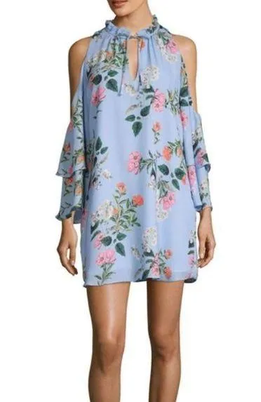 Great condition. Parker. Daphne Cold Shoulder Shift Dress. Floral print on blue ground. Cold shoulde... Show more