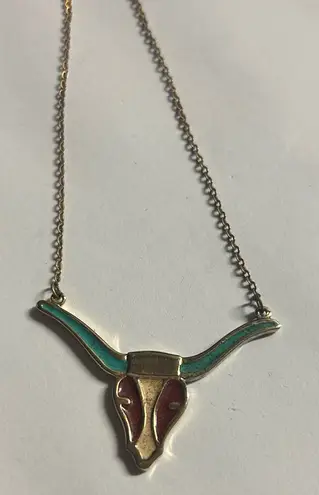 Gold and Teal Bull Skull Necklace - $30 - From Kayla