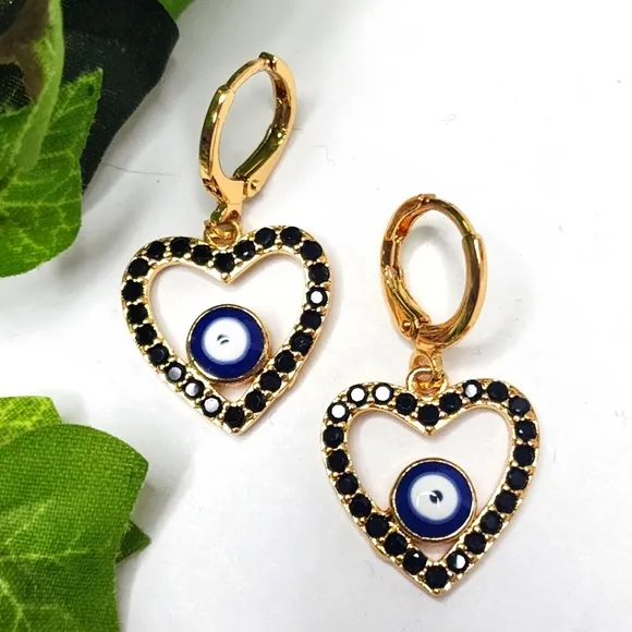 Gold Filled Black Zirconia Heart Evil Eye Huggie Earrings - $20 - From Elsa