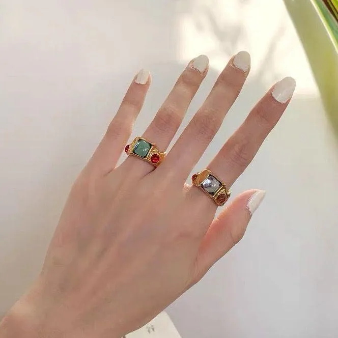 Gold ring Gem ring high end noble ring green and red gem - you are the shining star in the street 🧬Material: brass n synthetic quartz 🧬Size: 6,7, 8 🚚3.45domestic shipping 💖Dm for Bundle offer 👉🏻2-3 items 10%off, 4+items 15%off, both free shipping. Thank you💕, don’t hesitate to message me if you have any questions! 🧸 #goldring #vintagering #gemring #ownitwithdepop #owngifting
