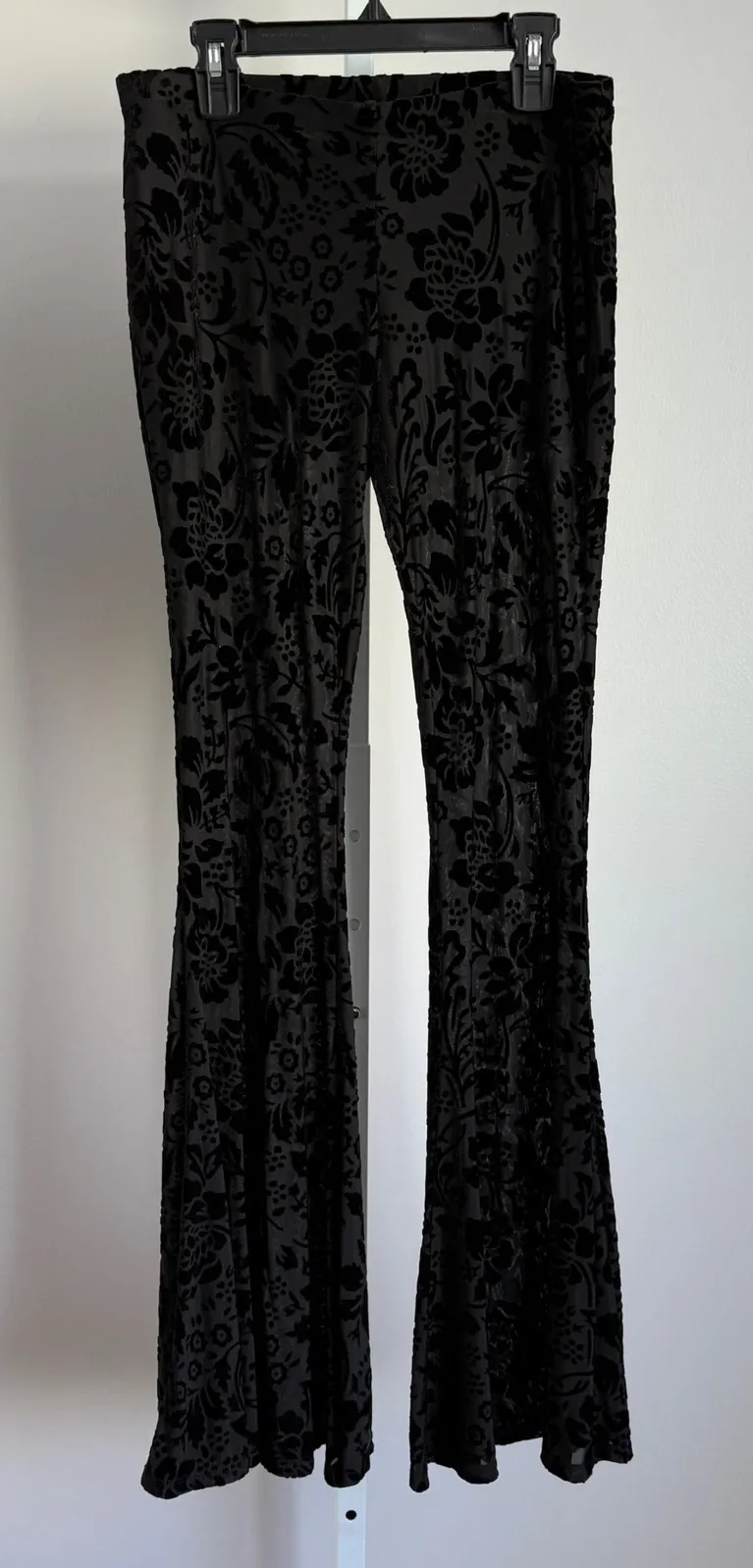 Rush Black Velvet Burnout sz S Witchy Goth Floral Bell Bottom Pants Flowy Bohemian Stylish bell bot... Show more
