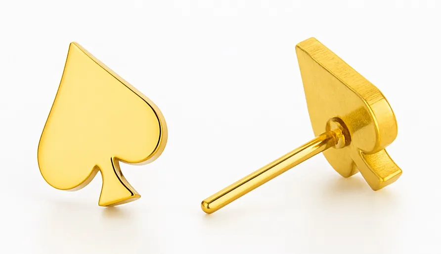 These Gold Spade Stud Earrings are crafted from durable 18k gold plated stainless steel with a sleek, polished finish. Featuring a minimalist spade design, they’re perfect for everyday wear or adding a subtle edge to your outfit. Lightweight, hypoallergenic, and stylish, these earrings bring a playful yet chic vibe to any look. Ideal for stacking or wearing solo. Spade 8mm x 10mm
