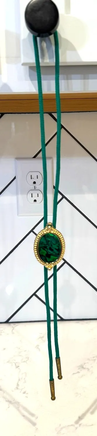 gold-tone bolo tie oval green malachite-style stone centerpiece green cord - $35 - From Krystal