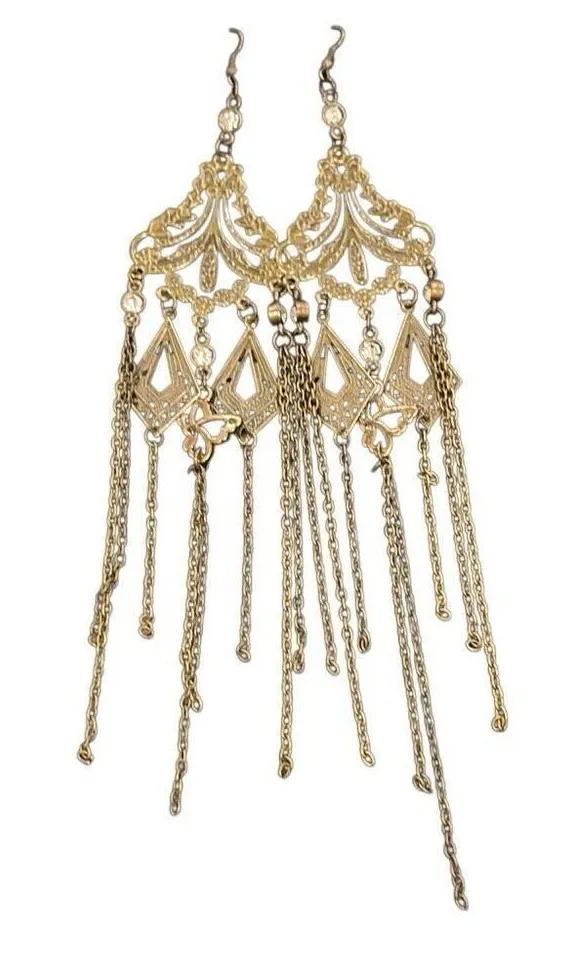 Gold Tone Filigree Chandelier Long Earrings Chain Fringe Boho Festival NWT - $13 New With Tags - From Amie