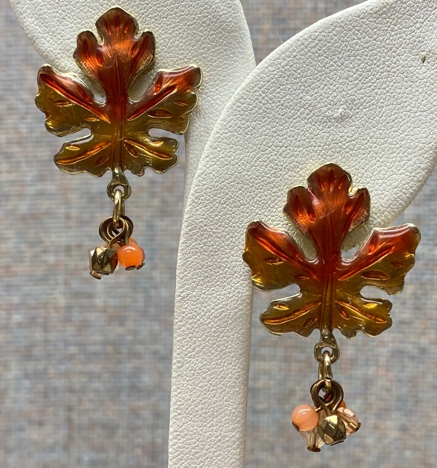 Preloved in excellent condition Please see all photos for close up details and measurements. Style: Dangle/Drop, Beaded Main Stone Color: Orange Closure: Hook Theme: Nature Main Stone: Assorted Gemstones Metal: Brass Shape: Leaf Type: Earrings Material: Enamel, Glass Main Stone Shape: Chip Ear Area: Lobe Secondary Stone: No Stone Number of Gemstones: 3 Occasion: Birthday Era: Undated Unit Type: Unit Keywords: fall earrings, leaf earrings, enamel earrings, gold tone earrings, beaded earrings, autumn jewelry, harvest jewelry, nature inspired, seasonal accessory, earrings for women, unique earrings, gift for her, statement earrings