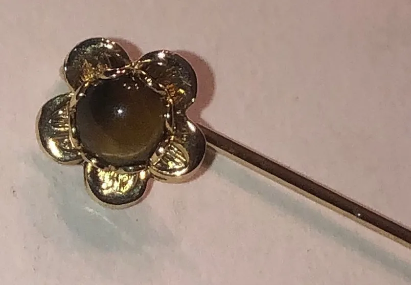 Gold Tone Vintage Tigers Eye Flower Stick Pin Brooch Hat Pin Good condition Approximately 2.25” K... Show more