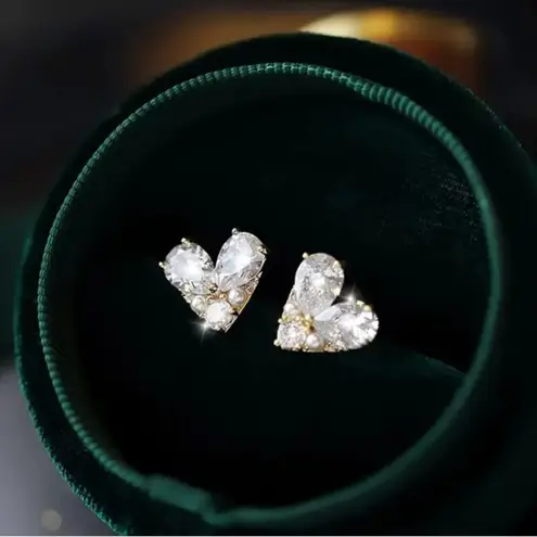 Gold Zircon Heart Earrings - $7 New With Tags - From Tracy