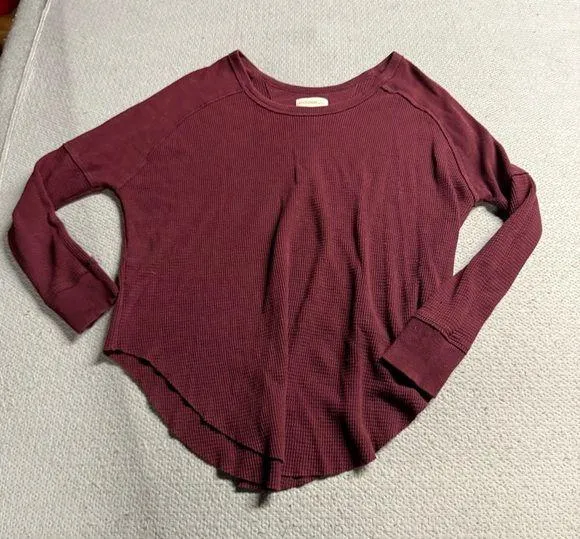 GOLDEN by TNA Burgundy Waffle Knit Thermal Long Sleeve Top Size XSmall Cotton Red - $19 - From Sophia