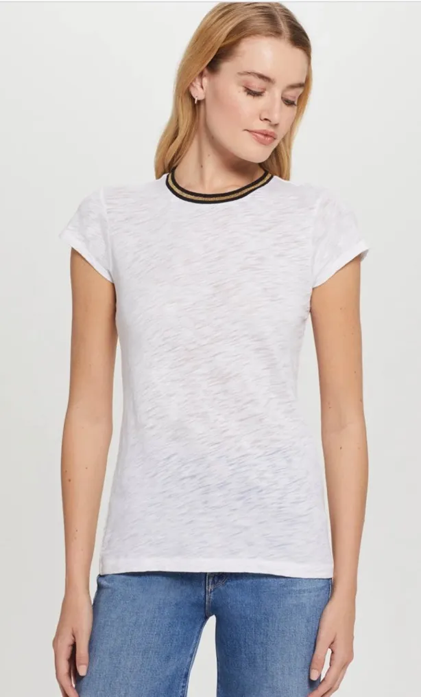 Goldie Lewinter Shirt Sleeve Metallic Tipped Ringer Tee Sz L White Size L - $29 - From Rachel
