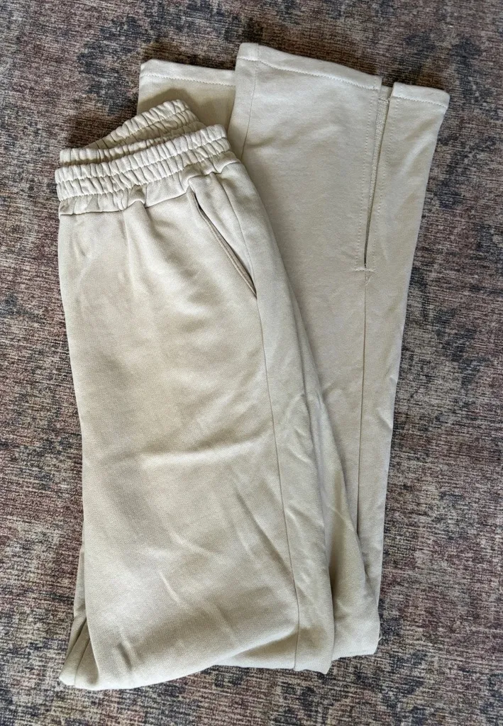 New without tags Goldie London Tan Lounge Sweat Pants - never worn Women’s Size XS See photos for measurements Extra long length with side slits at hem Pockets Thick elastic waistband 100% cotton Made in Italy Designed in Paris