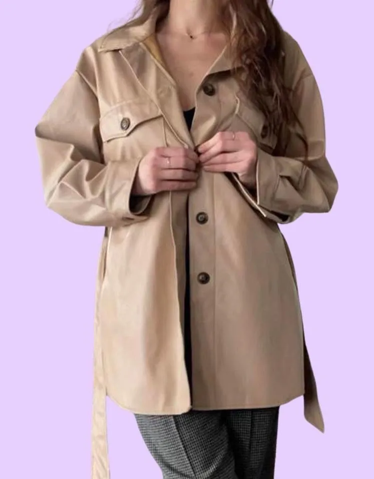 Goldie London tan vegan faux leather coat with waist tie šŸ”„ Size undefined - $39 - From goodfornow