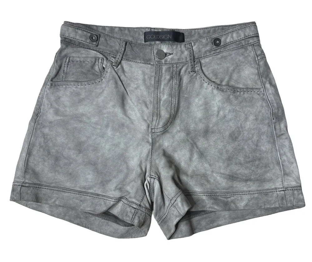 Women's Size 2 25" Mid Rise 5 Pocket Design Zip Fly Button Closure 100% Lambskin Leather Designer, Made in Italy, Distressed, High Waist, Edgy, Chic, Streetwear, Luxe, Premium, Soft, Butter Soft, Moto, Rocker, Festival, Grunge, Glam, Clubwear, Casual, Luxury, Gray, Grey, Charcoal, Blackened, Washed, Modern, Minimalist, Capsule, Style W3214, Neutral, Festival Measurements are Approximate: Inseam 4" Waist 30" Rise 10" Pre-owned in excellent condition unless otherwise stated. Please see photos for measurements, conditions, and details. Please Verify Measurements. (7783)
