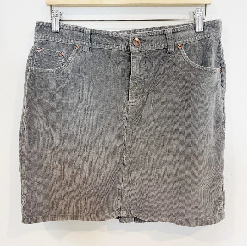 GoLite Soft Corduroy High Rise Mini Skirt Back Slit Stretch Casual Gray Size 10 Excellent Preowned... Show more