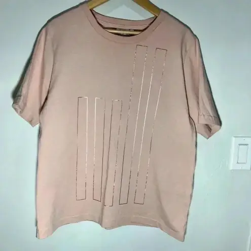 Good American Blush Linear Foil Graphic T-Shirt. This t-shirt is sturdy cotton in a classic crewneck... Show more