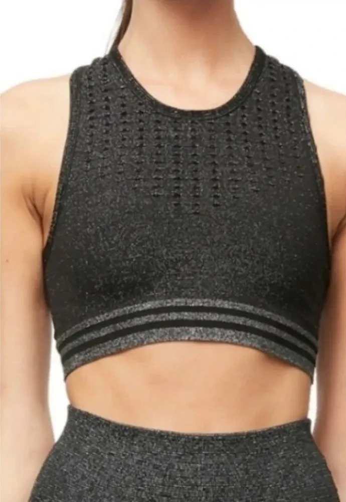 Brand new with tags Good American Seamless Lurex Stripe Sports Bra in Black Metallic Silver. Seamles... Show more