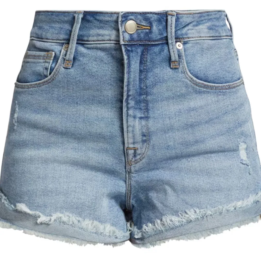 From Saks Good American Good Curve Distressed Denim Shorts Very good preloved condition Sz 6